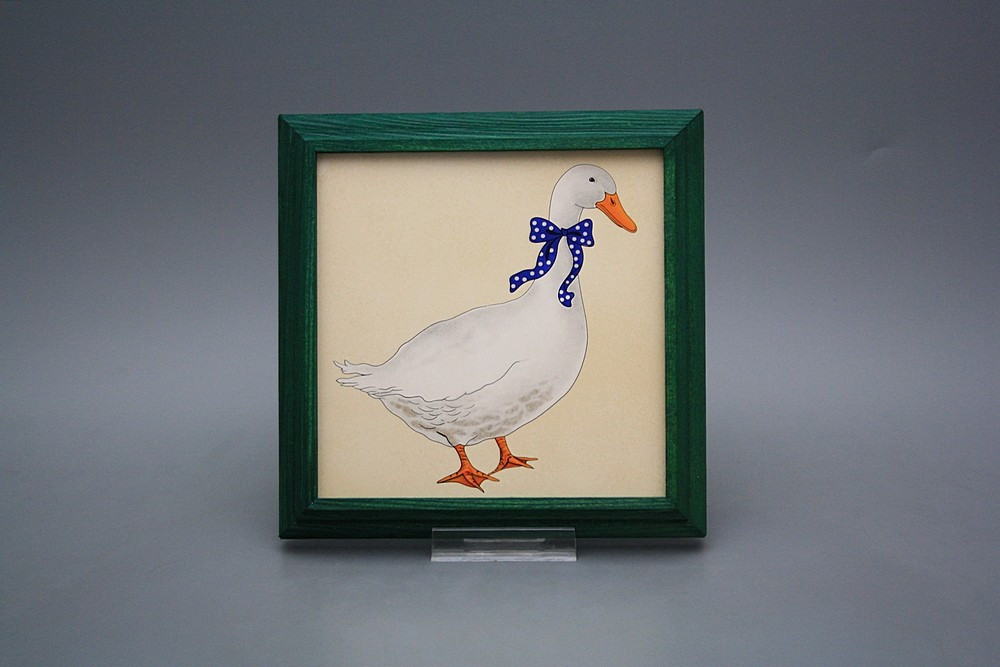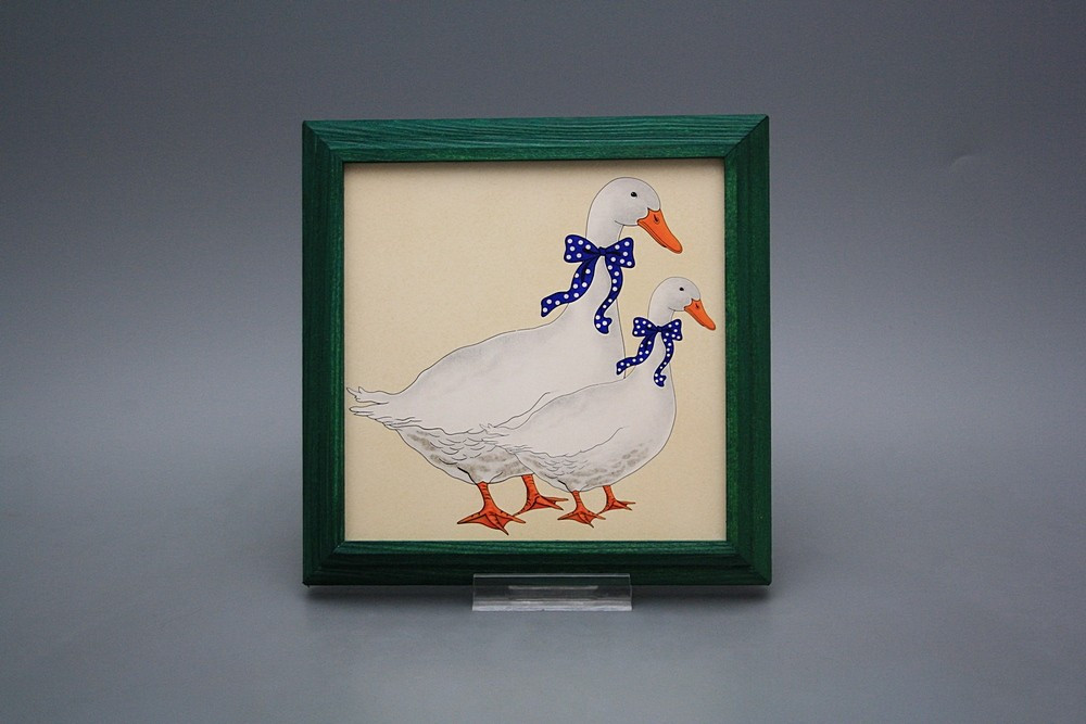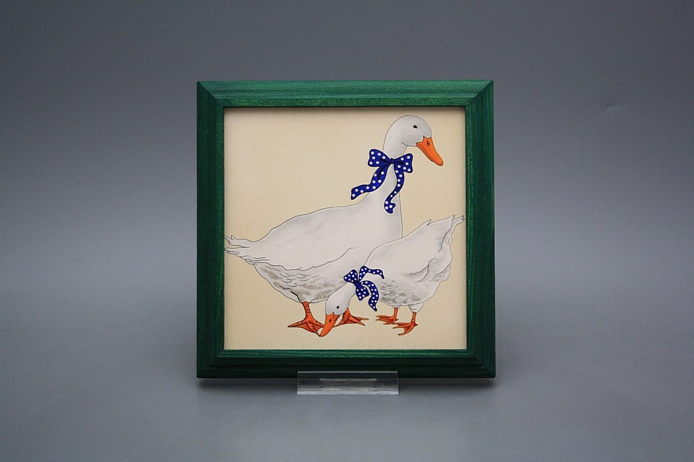 Keramisches Bild zum Aufhängen mit Holzrahmen.