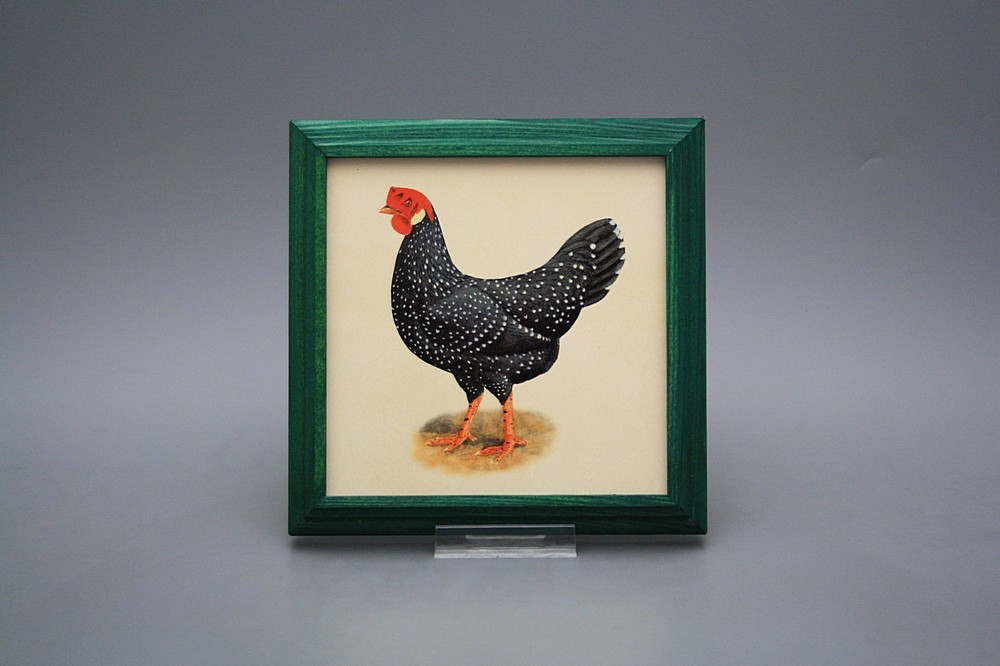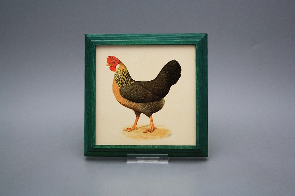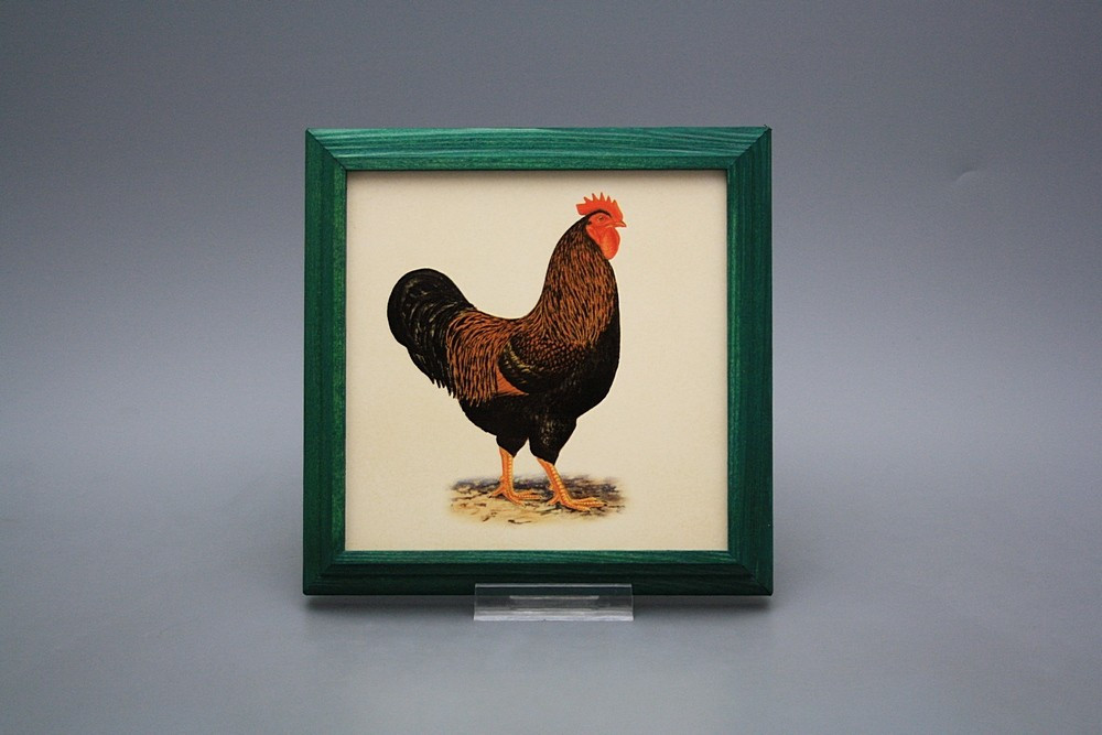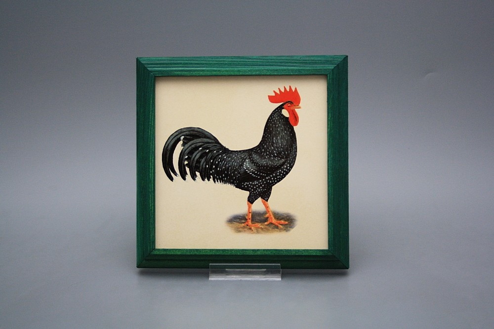 Keramisches Bild zum Aufhängen mit Holzrahmen.