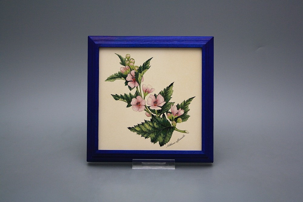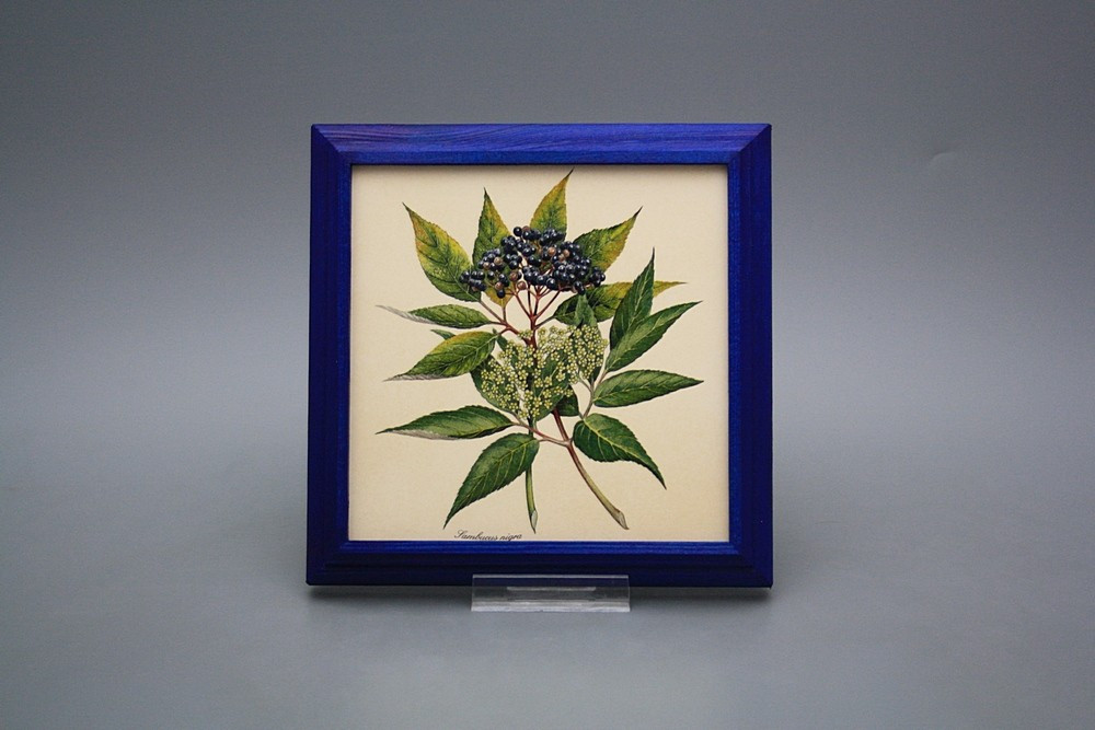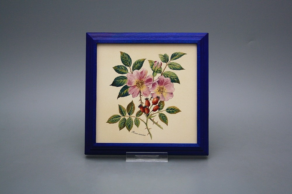 Keramisches Bild zum Aufhängen mit Holzrahmen.