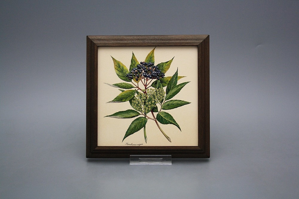 Keramisches Bild zum Aufhängen mit Holzrahmen.