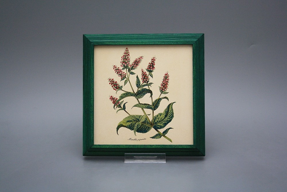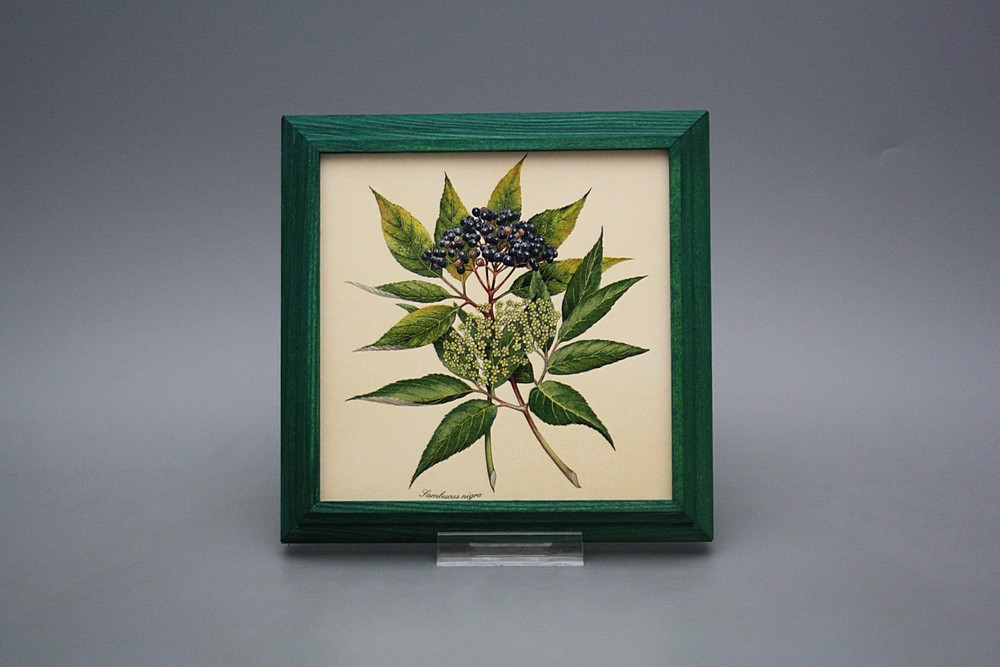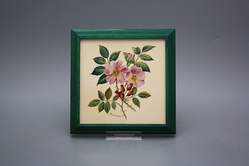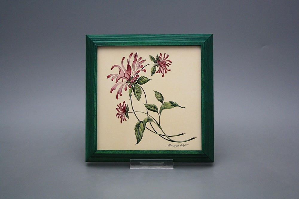 Keramisches Bild zum Aufhängen mit Holzrahmen.