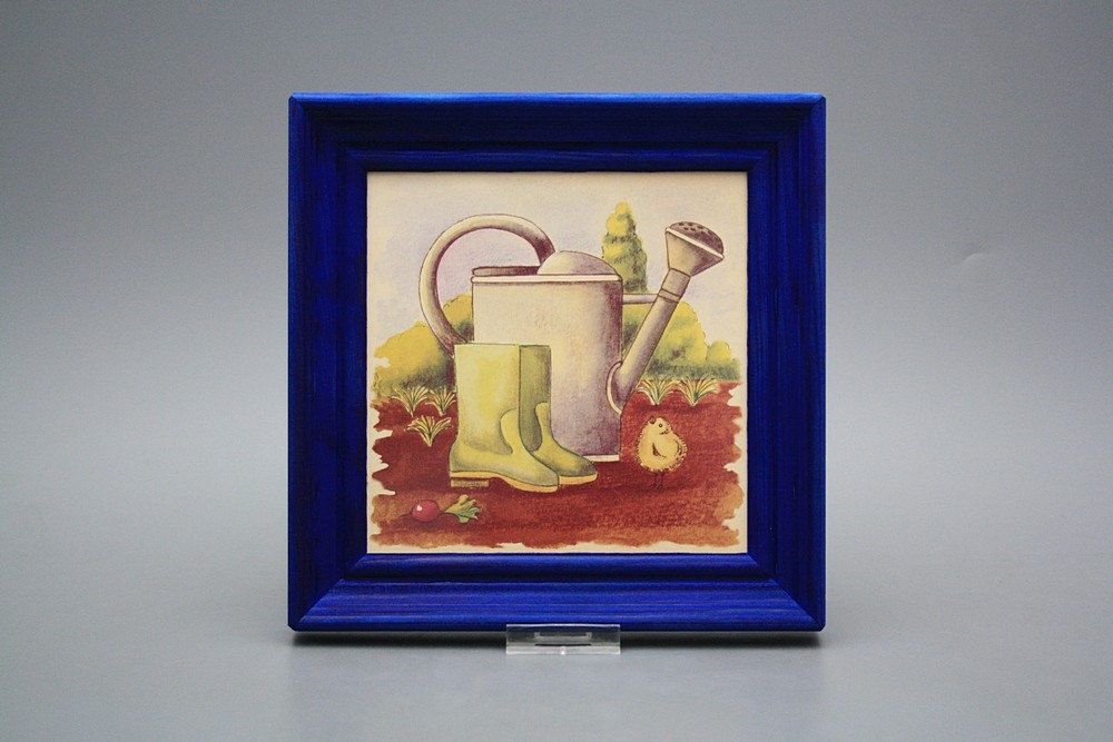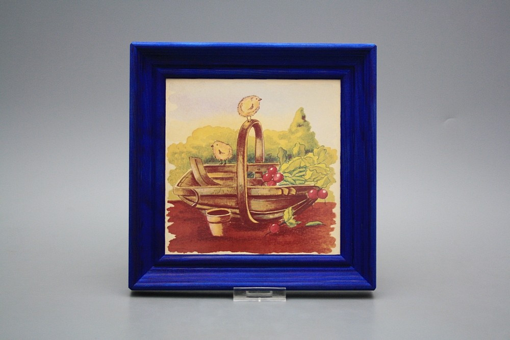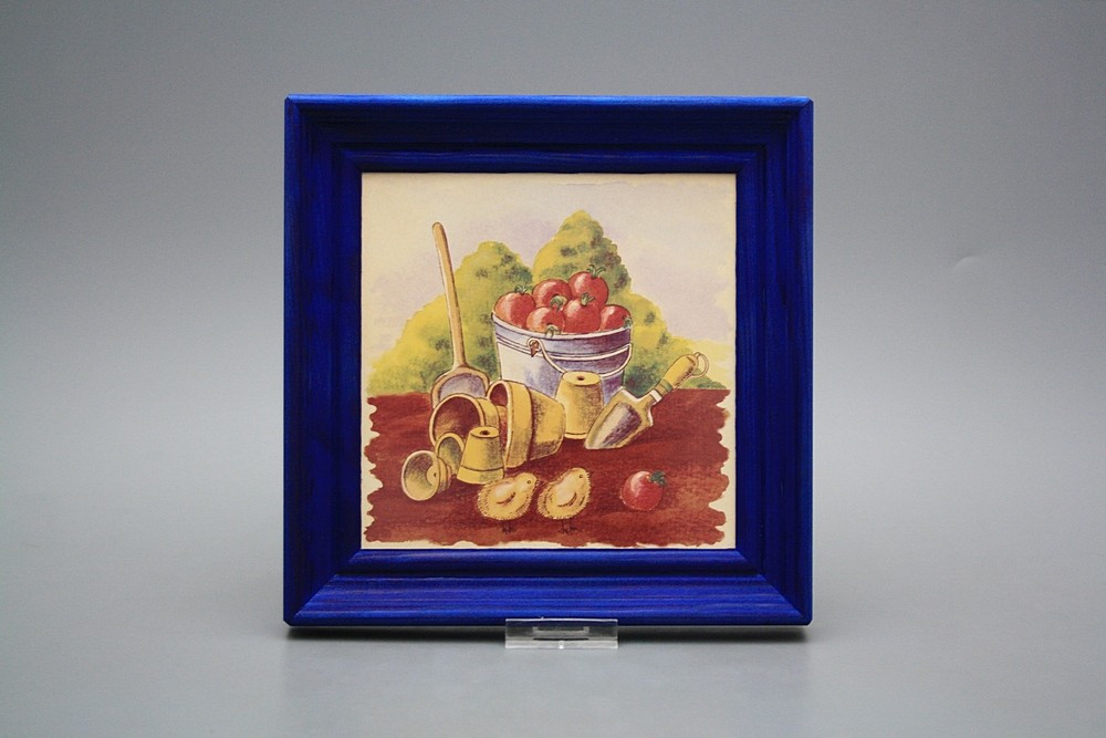 Keramisches Bild zum Aufhängen mit Holzrahmen.