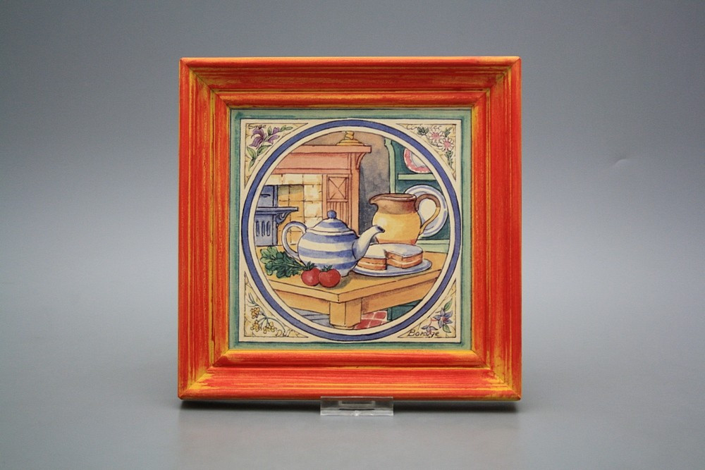 Keramisches Bild zum Aufhängen mit Holzrahmen.