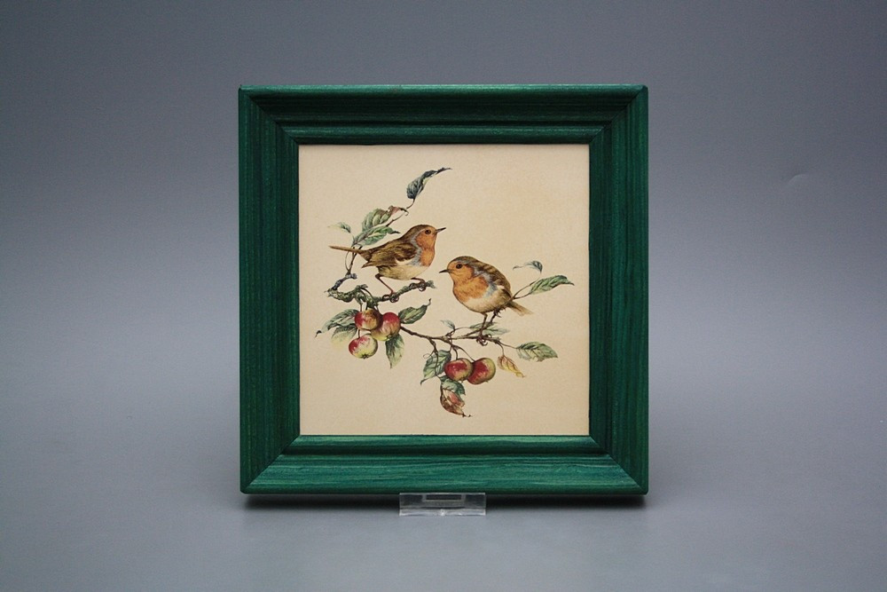 Keramisches Bild zum Aufhängen mit Holzrahmen.