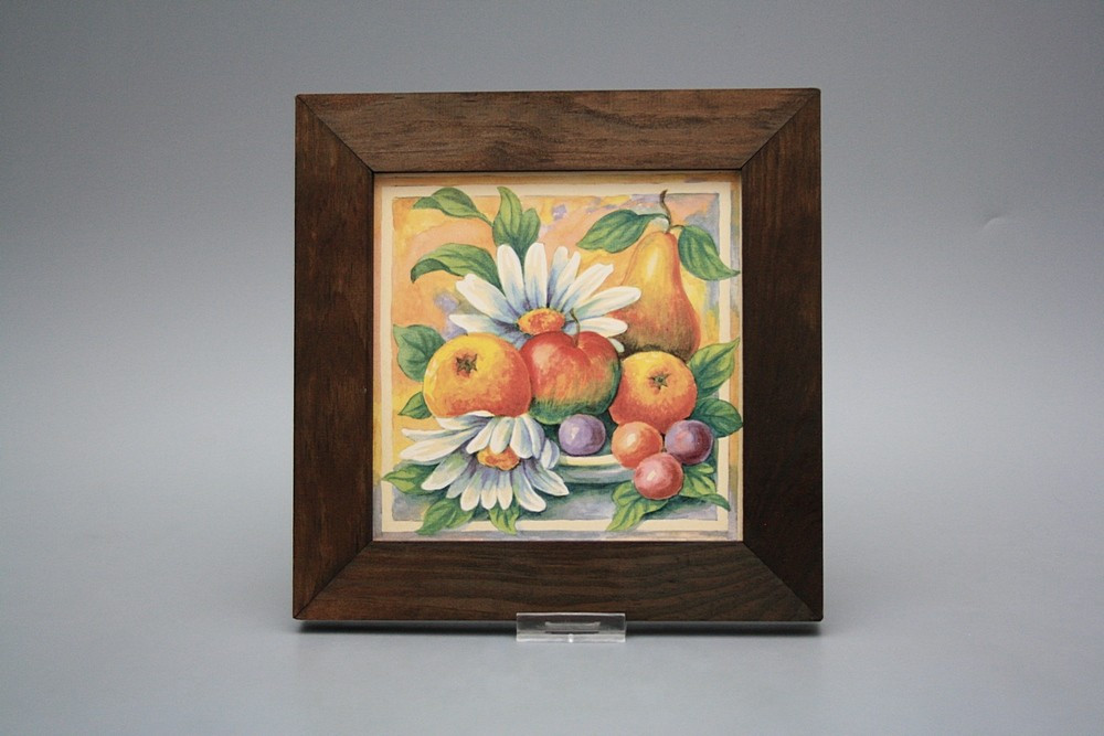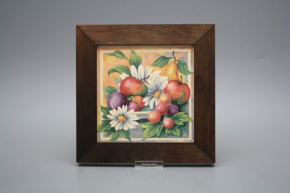 Keramisches Bild zum Aufhängen mit Holzrahmen.