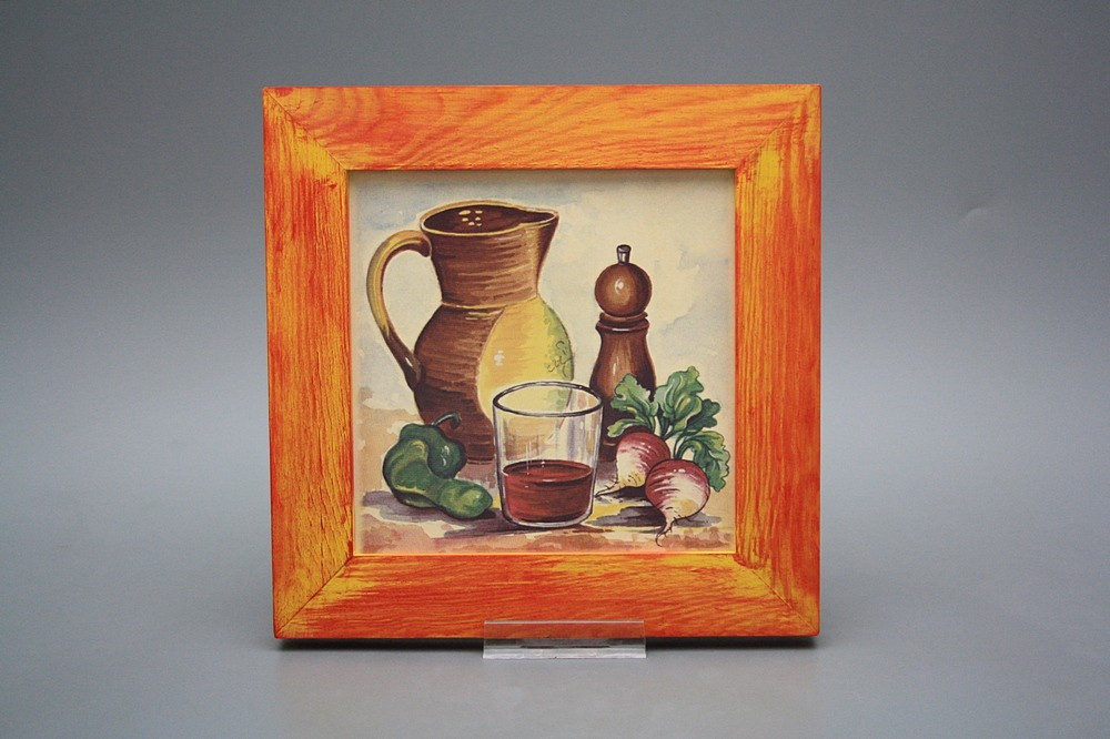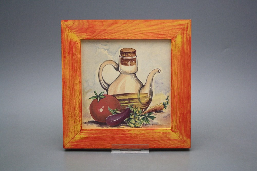 Keramisches Bild zum Aufhängen mit Holzrahmen.