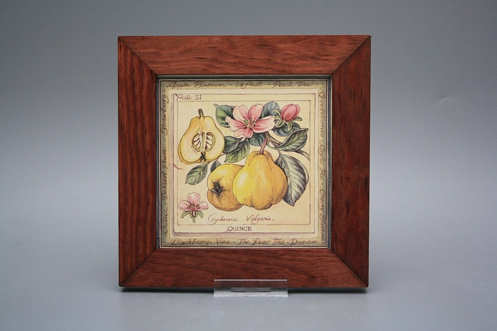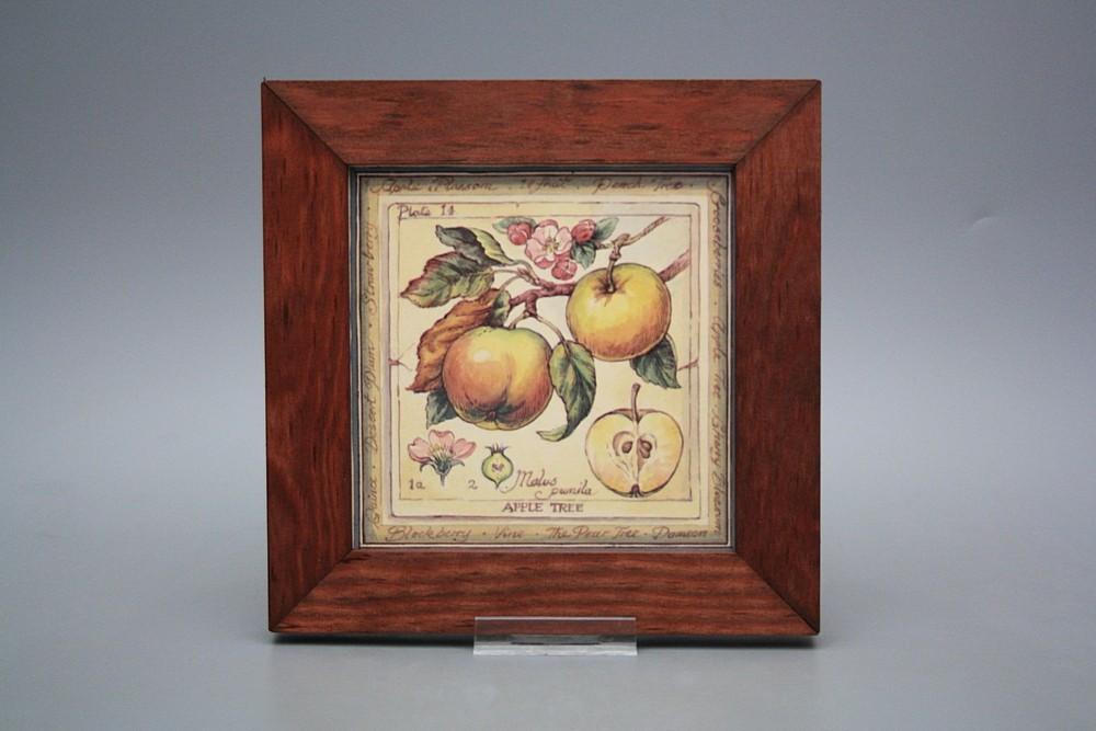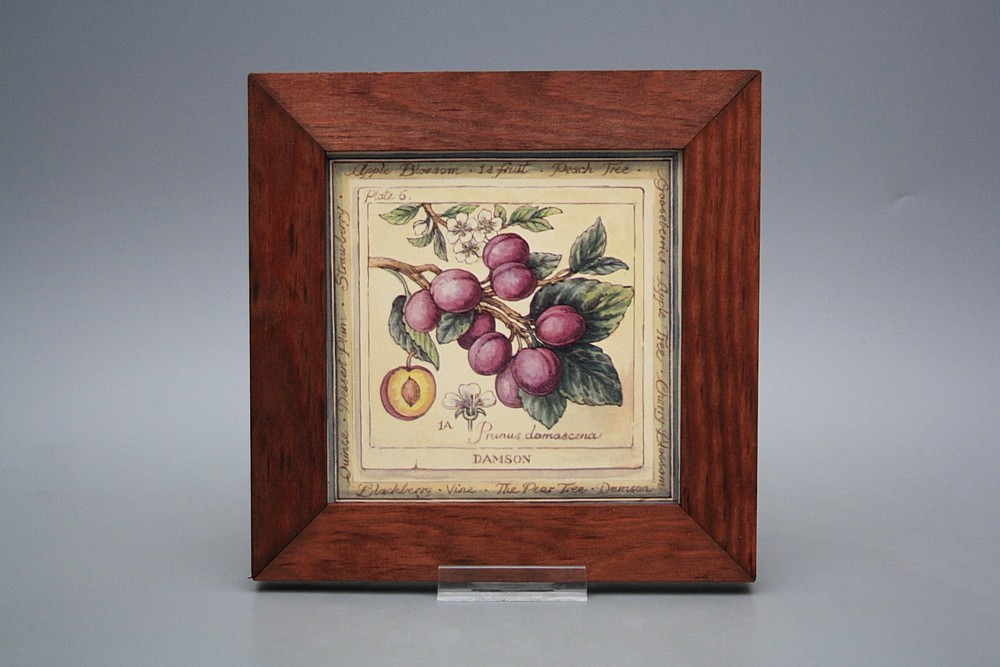 Keramisches Bild zum Aufhängen mit Holzrahmen.