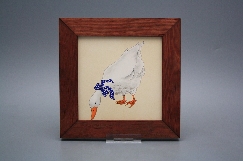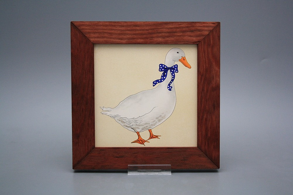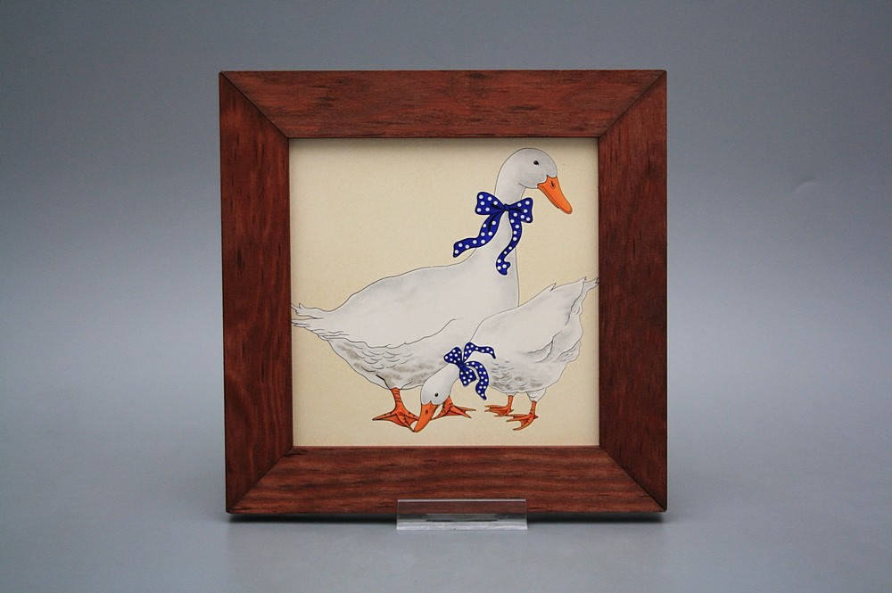 Keramisches Bild zum Aufhängen mit Holzrahmen.
