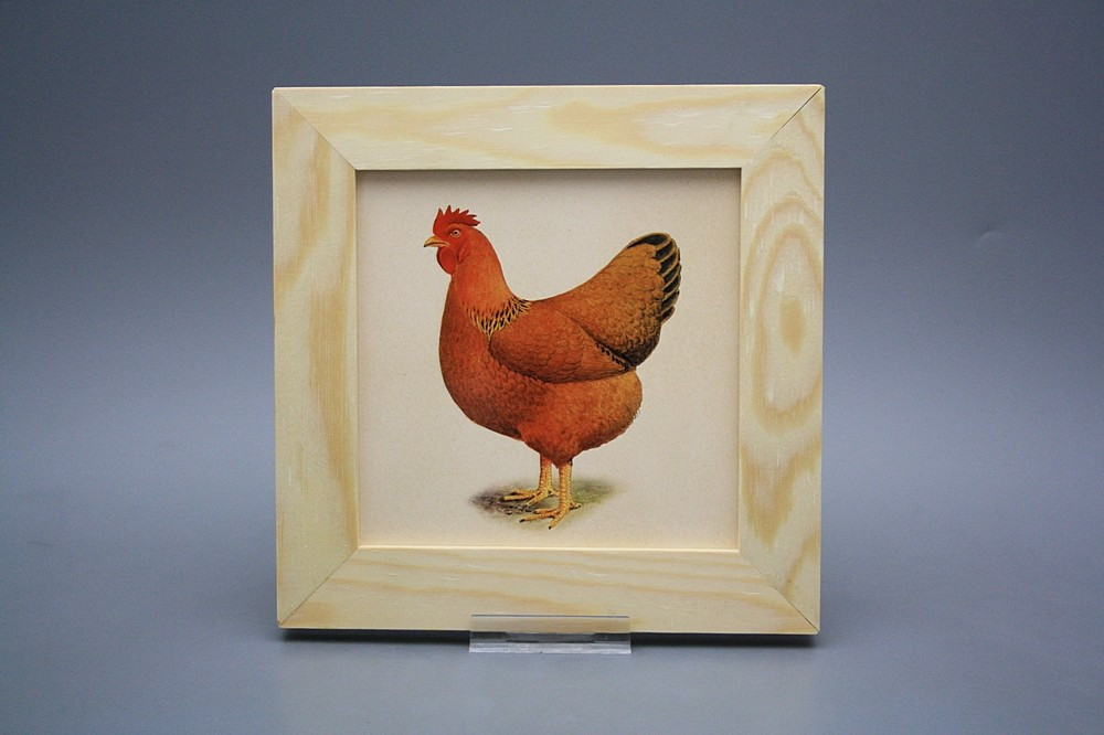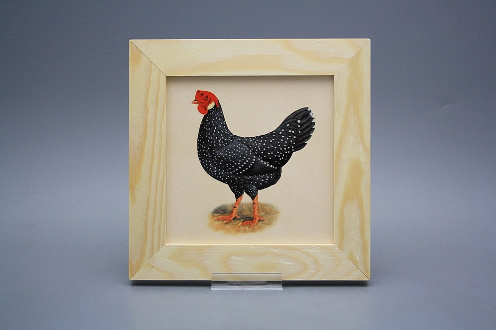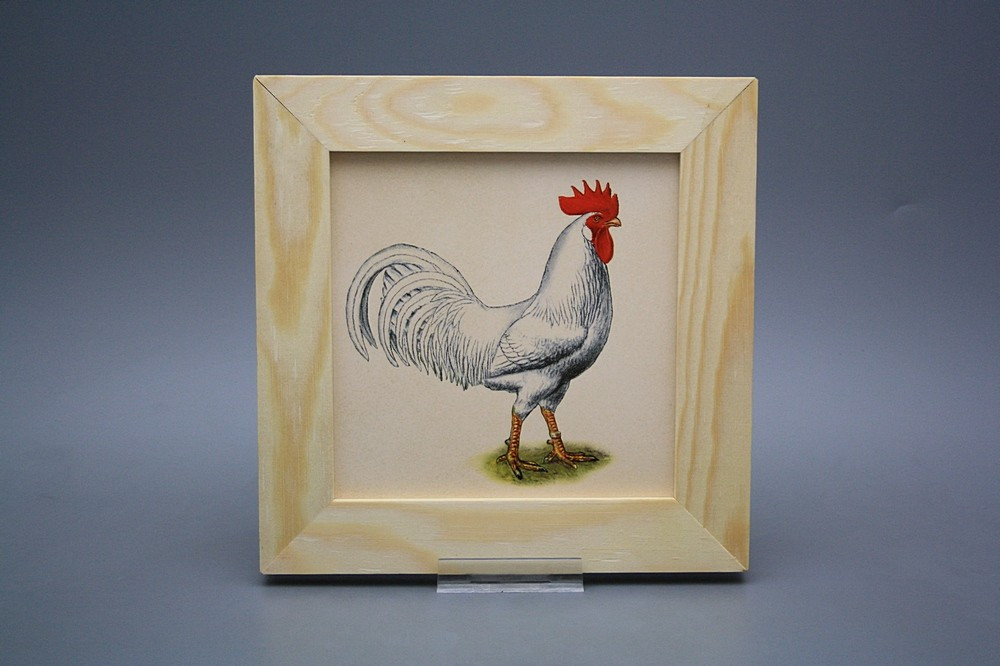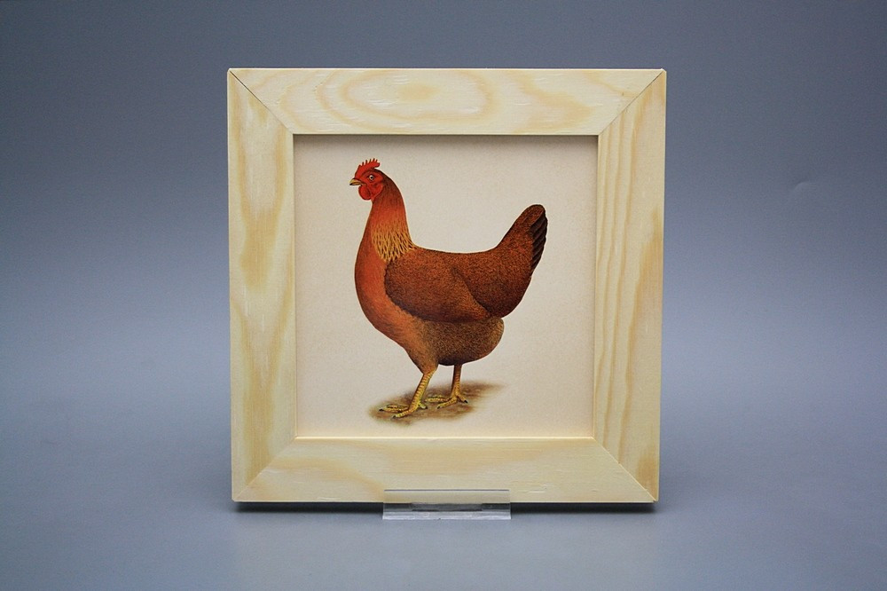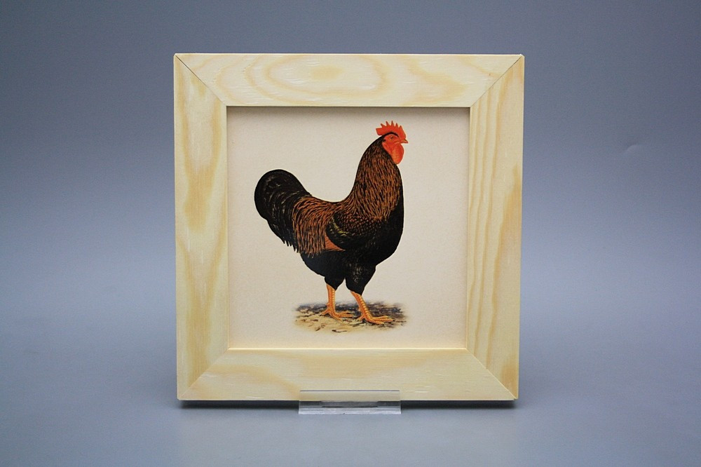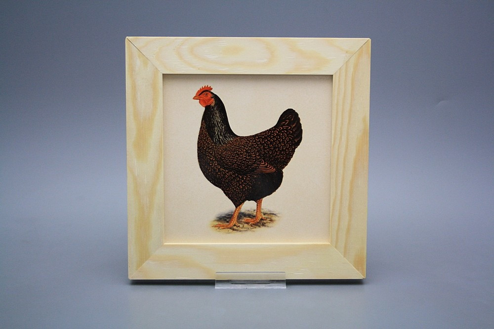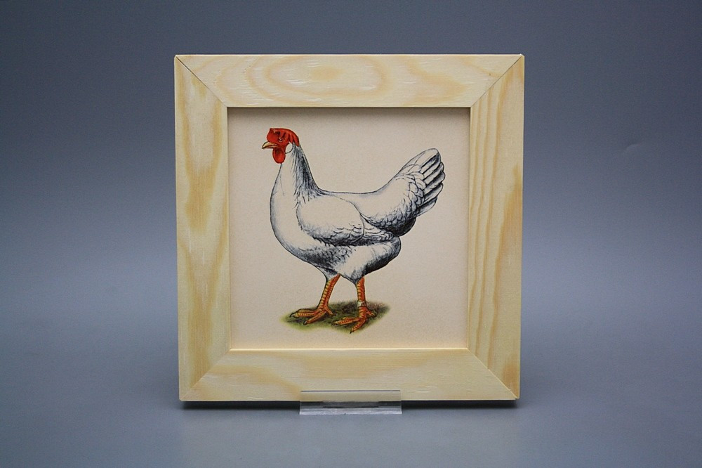 Keramisches Bild zum Aufhängen mit Holzrahmen.