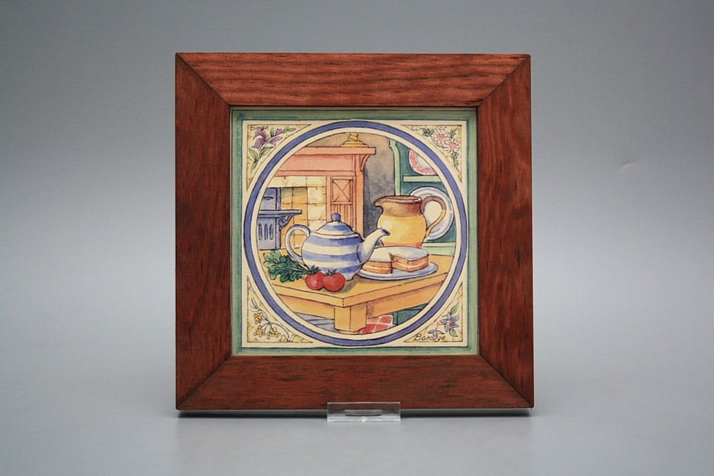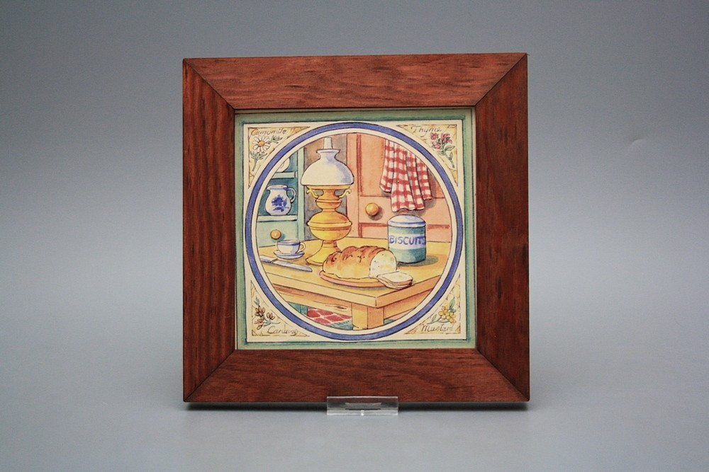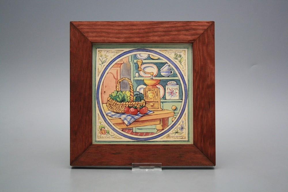 Keramisches Bild zum Aufhängen mit Holzrahmen.
