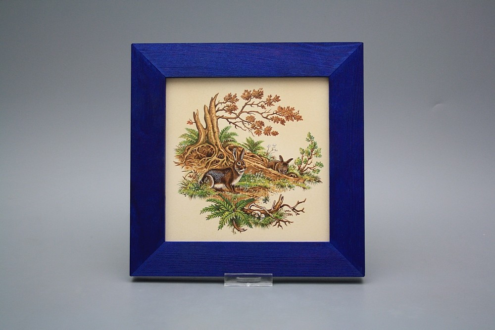 Keramisches Bild zum Aufhängen mit Holzrahmen.