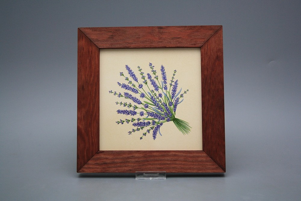 Keramisches Bild zum Aufhängen mit Holzrahmen.
