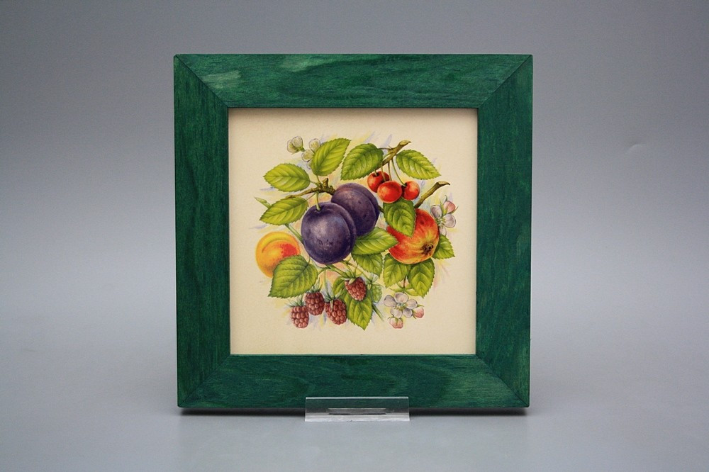 Keramisches Bild zum Aufhängen mit Holzrahmen.