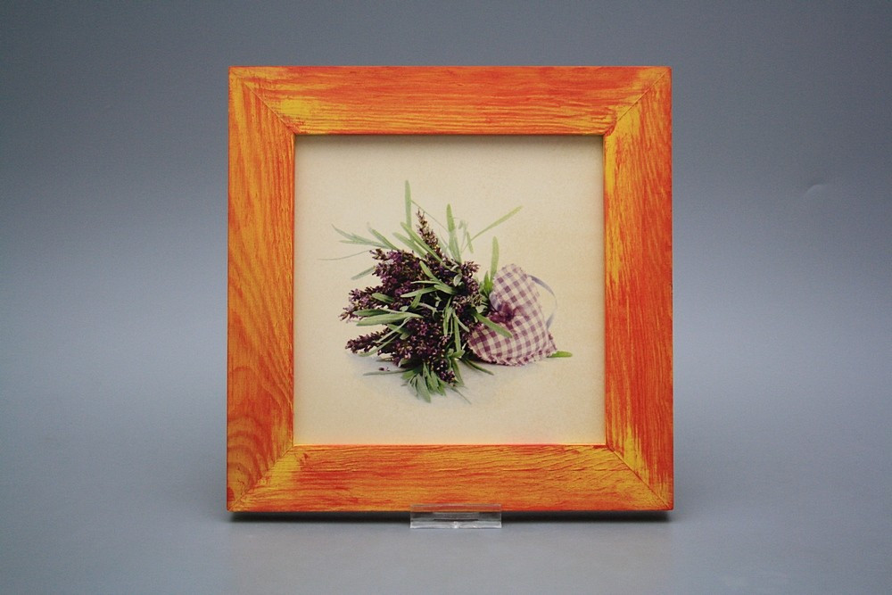 Keramisches Bild zum Aufhängen mit Holzrahmen.