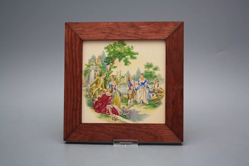 Keramisches Bild zum Aufhängen mit Holzrahmen.