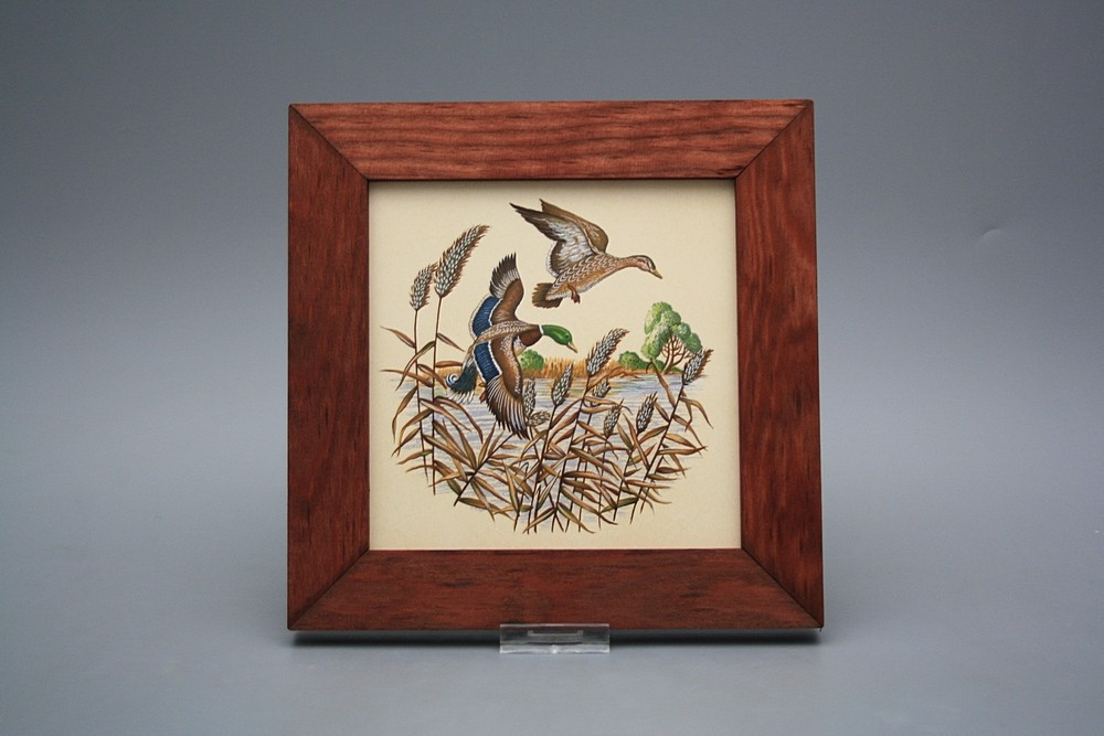 Keramisches Bild zum Aufhängen mit Holzrahmen.
