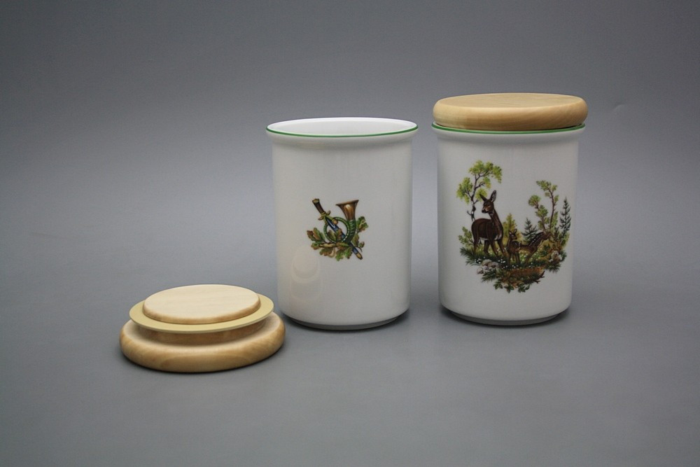 Praktische große Dose mit Holzdeckel, gefertigt aus böhmischem Markenporzellan von höchster Qualität. Spülmaschinenfest!!!