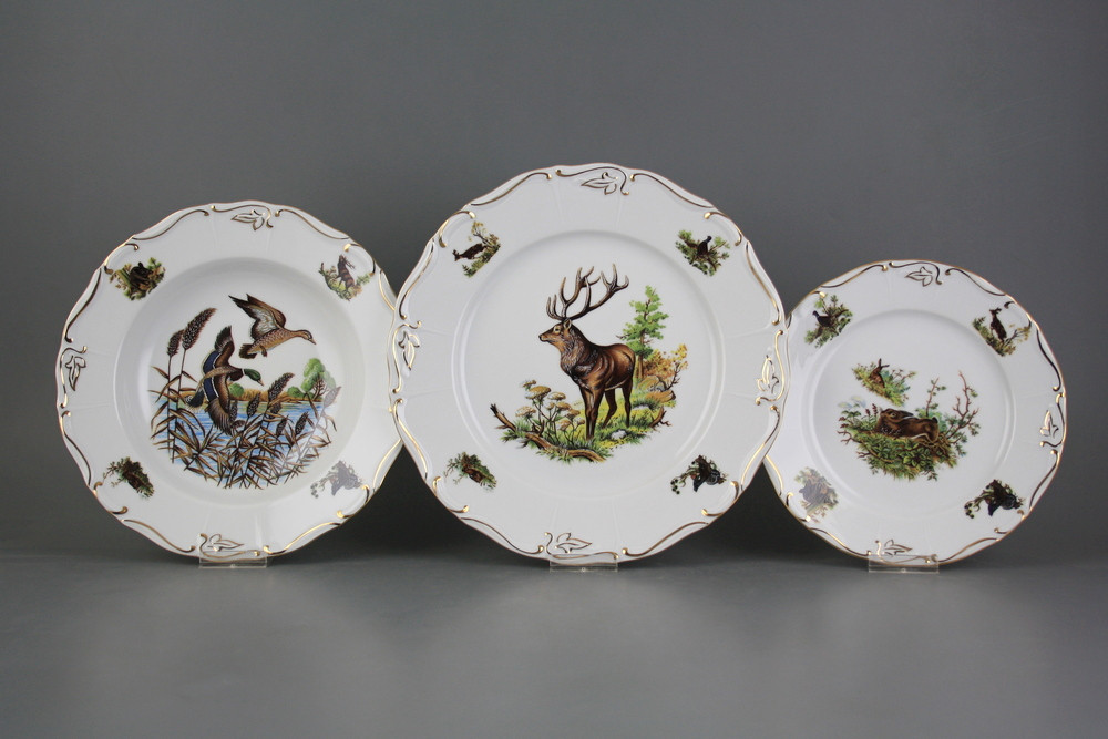 Luxuriöses 18teiliges Tellerset, gefertigt aus böhmischem Markenporzellan von höchster Qualität. Spülmaschinenfest und mikrowellentauglich, NEIN!!!